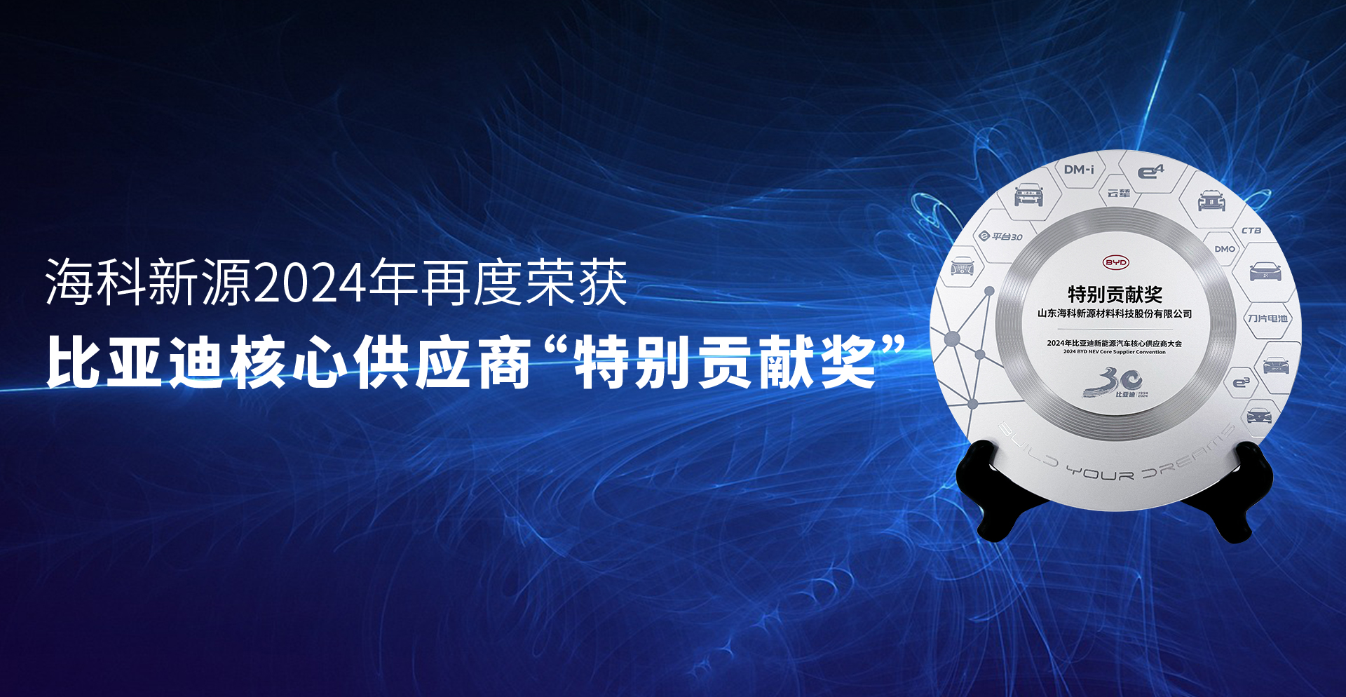 海科新源連續(xù)四年獲獎,是比亞迪對海科新源的高度認可,也突顯了我公司在電解液溶劑領域走出了自己的優(yōu)勢之路。